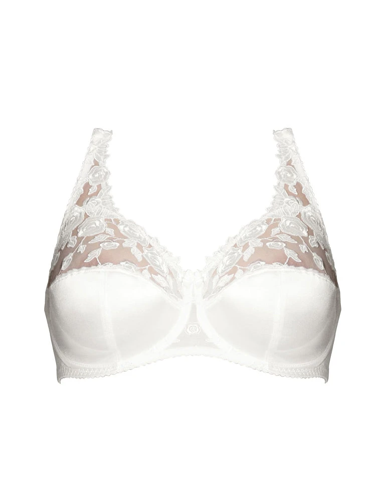 Featuring underwired and non-padded cups made from gorgeous detailed embroidery with soft satin sheer mesh to create a semi-sheer look. The full coverage cups provide a naturally rounded shape, ensuring a natural uplift. Finished with adjustable straps, the Belle Full Cup bra is guaranteed to give you the perfect fit.