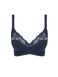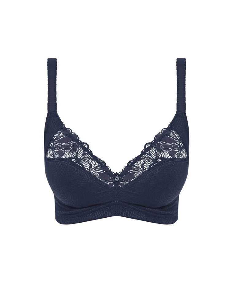Fantasie’s Memoir Soft Cup Bra is a Navy, with dramatic lace that adorns the top cup. The bra offers support and security without the need of an underwire, making it an essential for everyday comfort.