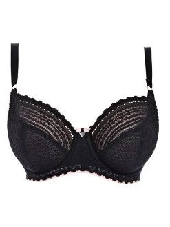 Freya Daisy Lace Balcony bra in colour Black is a perfect bra for everyday comfort. This charming non-padded bra features 3-section cups which provides support, uplift and a natural shape to the bust. The bra boasts a stunning geometric lace with adjustable satin straps and a cute satin bow in the centre. A romantically chic bra which is perfect for your everyday lingerie collection!