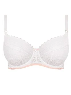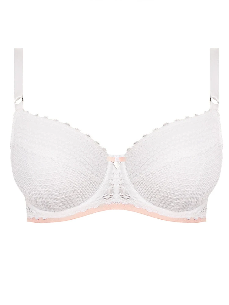 Freya Daisy Lace Balcony Half Cup bra in colour White is a perfect bra for everyday comfort. This charming padded bra features multi part cups which provides support and a natural shape to the bust. The bra boasts a stunning geometric lace with adjustable satin straps and a cute satin bow in the centre. A romantically chic bra which is perfect for your everyday lingerie collection!