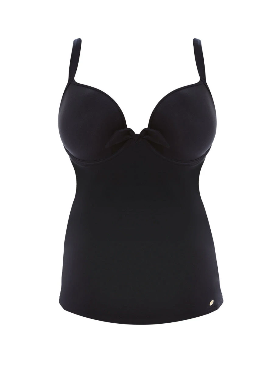 Introducing Freya’s Deco Swim Moulded Tankini Top in Black. Featuring a seam-free finish, optimum support and a low cut neckline. Finished with tie detailing and fixed, adjustable straps.