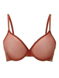 Glossies by Gossard, made to make you feel glamorous and empowered. This Glossies Sheer Moulded Bra in Cayenne features moulded cups that are seamless, making this a perfect everyday bra that will be comfortable all day long.