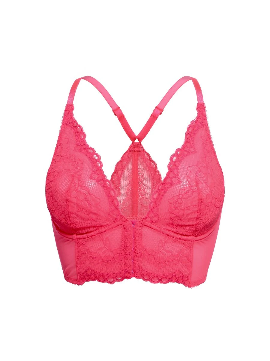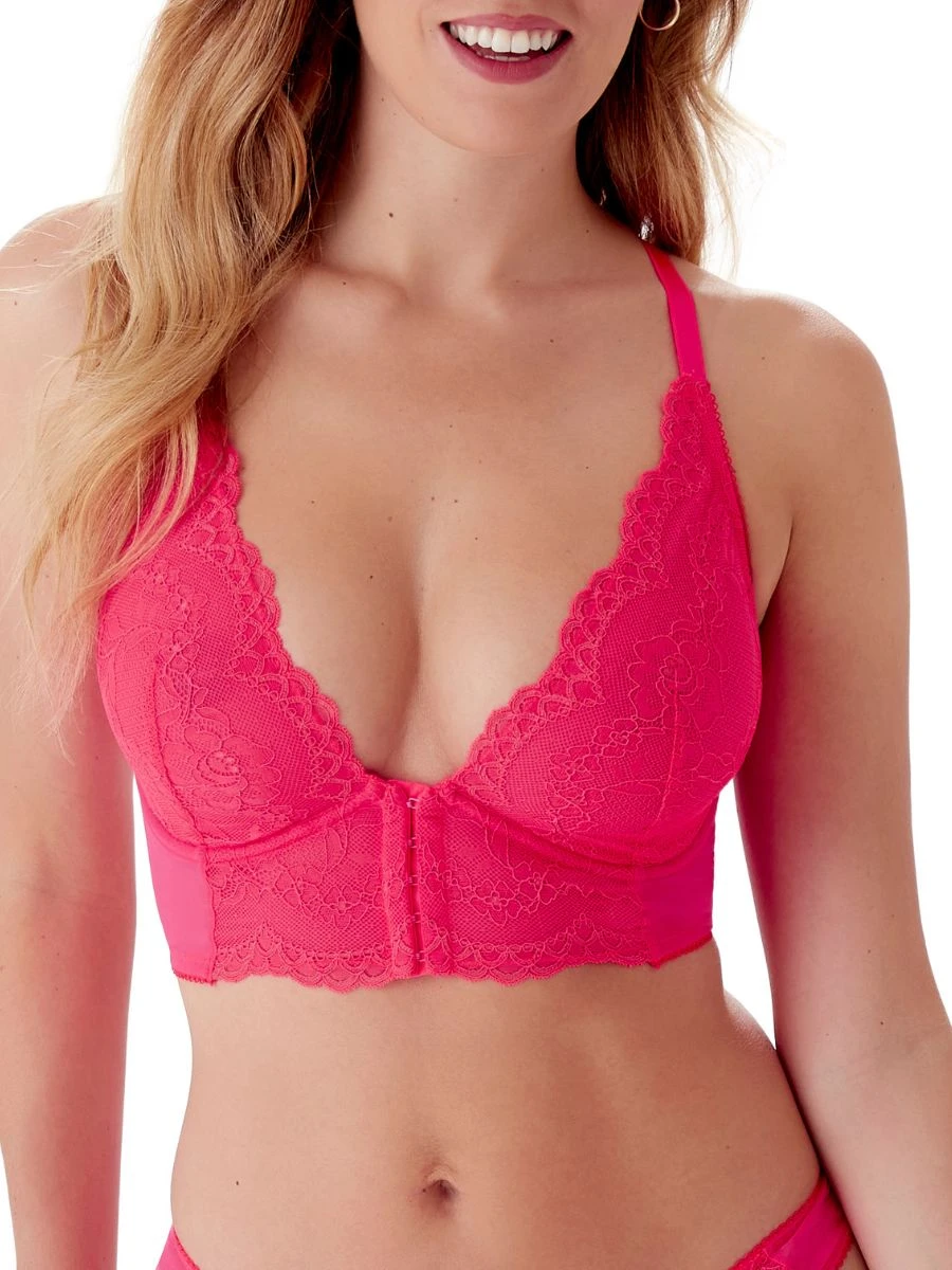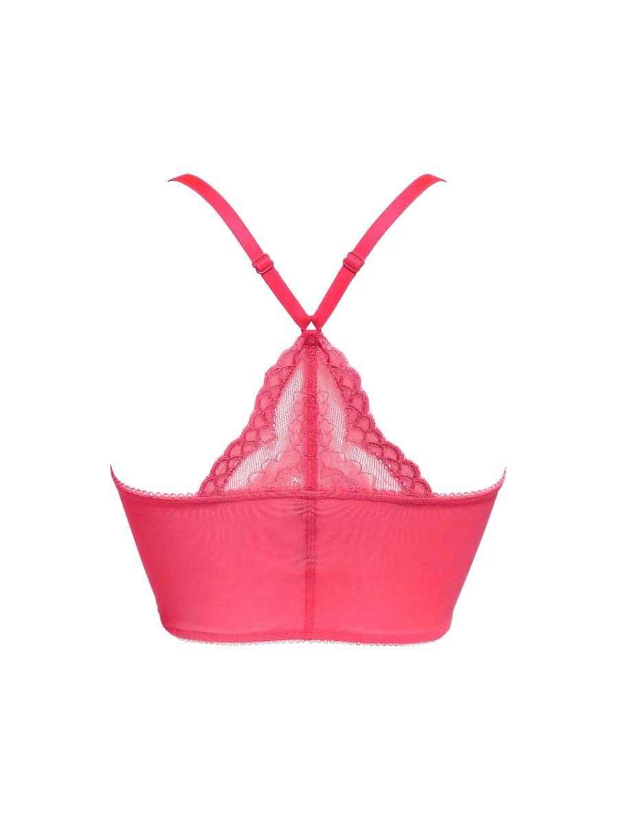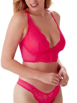 Fashioned from beautiful corded stretch lace is Gossard’s Superboost Lace Deep V Bralette in Diva Pink.