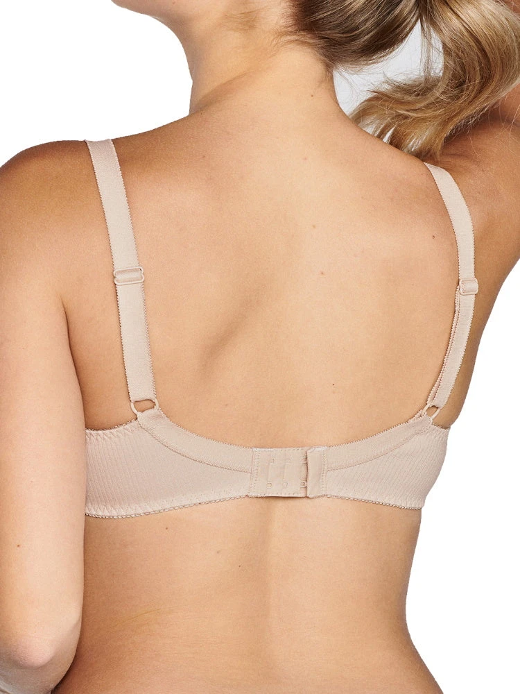 Soft Cup Cotton Bra from Naturana, in Light Beige. Made with comfort as a priority, this bra is made from 100% cotton. The non-padded full cups give a natural shape, and support cup sizes from A-E.