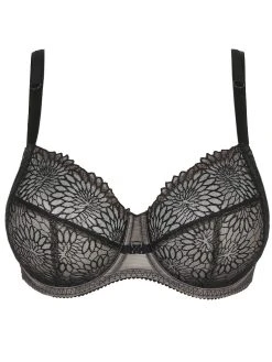 Primadonna Sophora range featuring the three-section full cup bra in Black. Underwiring to elevate and project your bust while still providing high support. It adds a touch of sophistication to any lingerie drawer with its exquisite embroidery.