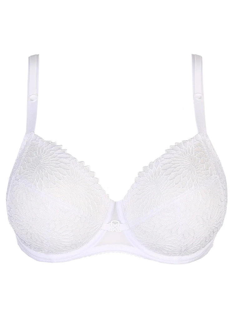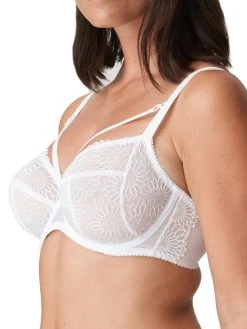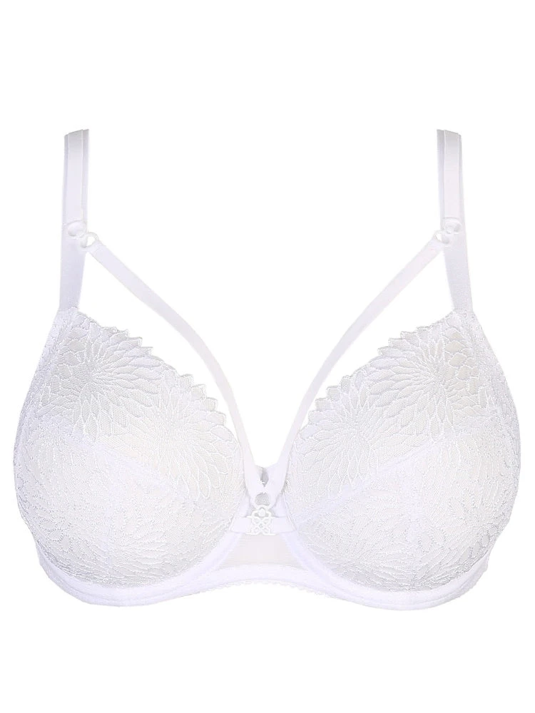 Primadonna Sophora range featuring the three-section full cup bra in White. Underwiring to elevate and project your bust while still providing high support. It adds a touch of sophistication to any lingerie drawer with its exquisite embroidery.