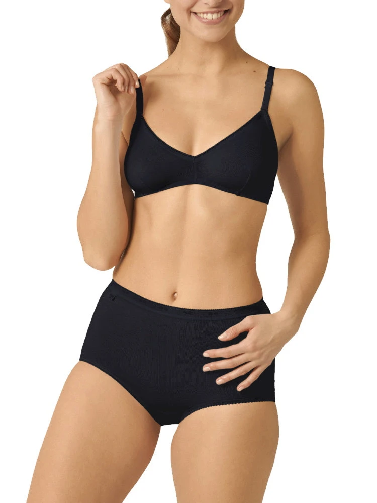 This 24/7 Cotton Soft Cup Bra from Sloggi guarantees true comfort and quality, all day long. This soft cup bralette, made from soft jersey, has a high cotton count and will feel super smooth on your skin. Pair with the Cotton Midi or the Cotton Maxi for ultimate comfort. Available in Black.