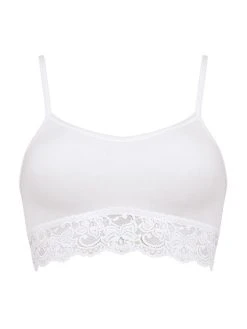 This Romance Bralette from Sloggi guarantees true comfort and quality, all day long. This soft cup bralette, made from soft jersey, has a high cotton count and will feel super smooth on your skin. Finished with a feminine, floral lace edging. Available in White.